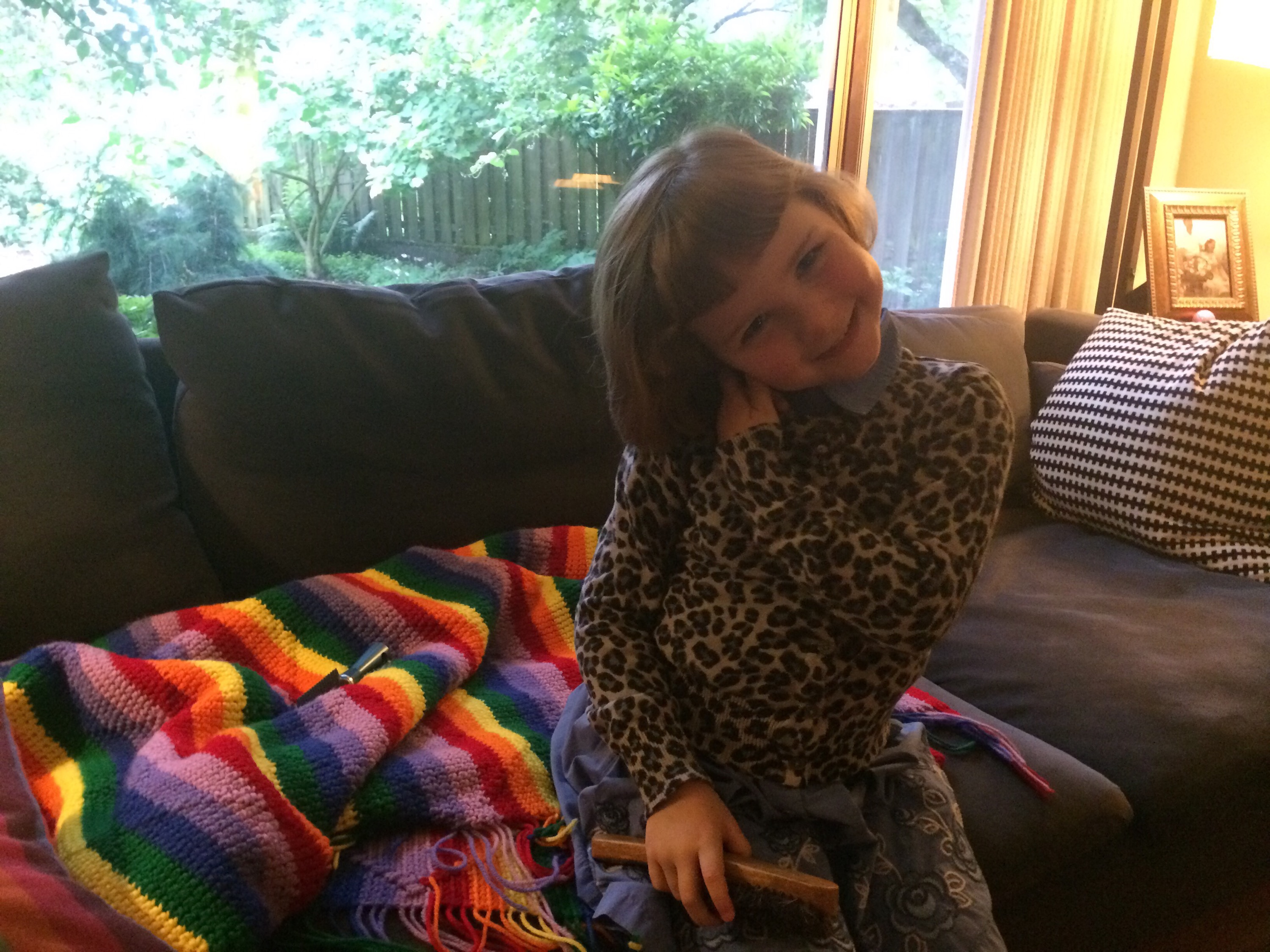 He let her brush it eventually. 🙂 When done, she kissed him and said, “There, now you look cute.”