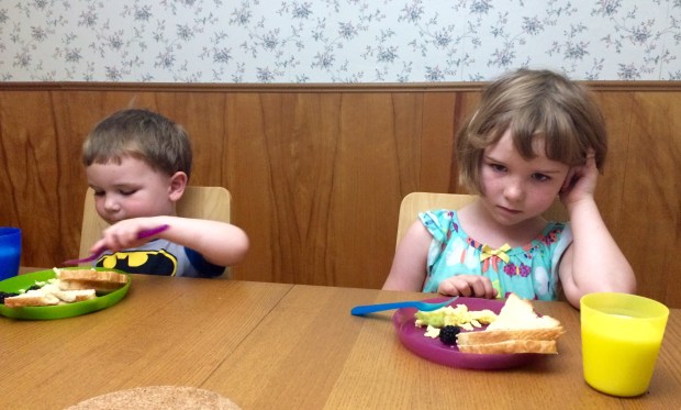 Normally I say no imaginary cell phone calls at breakfast, but our cousin left her stuffed panda with us last night for an extended visit, so Amelia had to call the stuffed animal school to let them know that Panda would be joining them this morning. Serious business indeed.