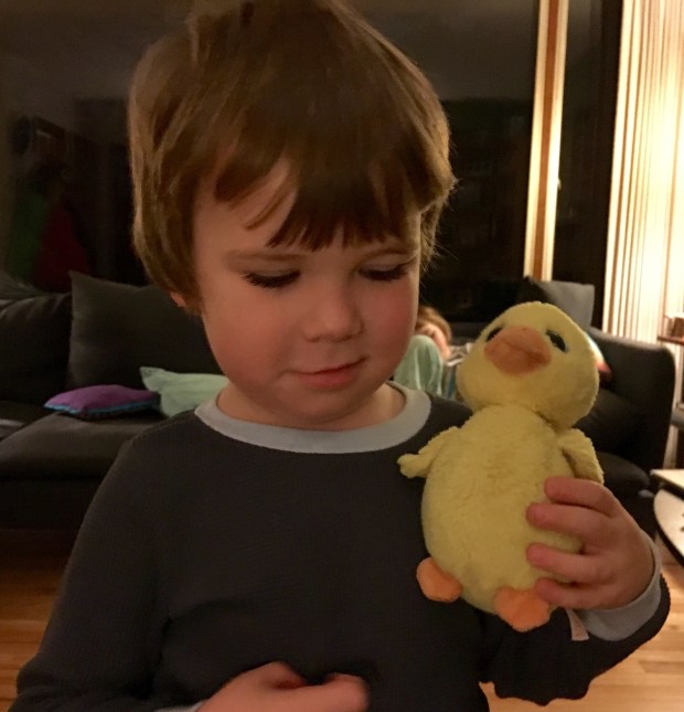 “And do you know that Peep-Peep Head turned into a Jedi knight-bird? And his new name is Sparklers. And he has a secret x-wing, and it’s (whispers) my trampoline. And that’s why his head is bigger. And he has a invisible light-saber.”